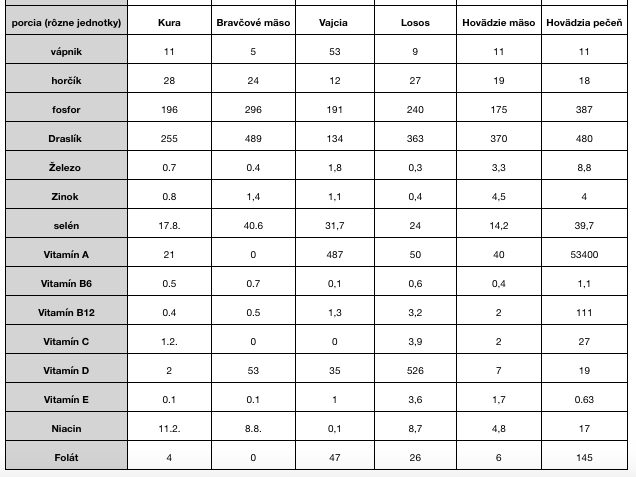 V tabuľke máme síce porovnanie rôznych živočíšnych zdrojov ale je určite veľmi dôležité čím boli tieto živočíchy kŕmené…